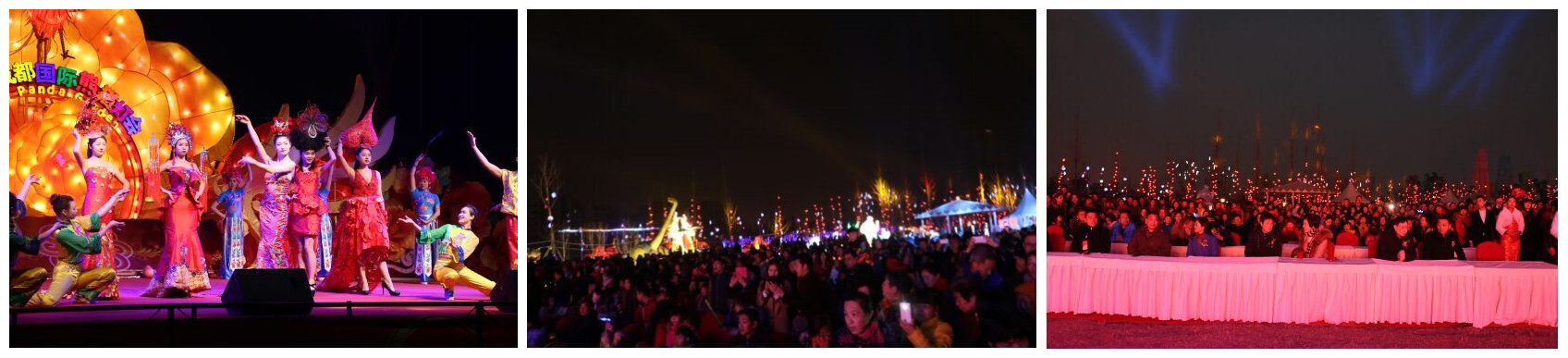 四川藝思特彩燈文化傳播有限公司主辦的“第四十八屆成都國際熊貓燈會”,于2016年2月2日在三圣鄉(xiāng)七彩田野隆重啟幕。本屆燈會以”燈耀錦官城 花綻七彩園”為主題, 囊括了現(xiàn)代彩燈所有表現(xiàn)形式的100多個場景式燈組、組團式燈組、單體大型燈組、舞臺式燈組、彩門、門廊,以及燈柱、燈廊、光雕等;10萬余件現(xiàn)代光源組成的氛圍彩燈燦若星河,將冬日的七彩田野裝扮成了夢幻迷離的彩燈世界。