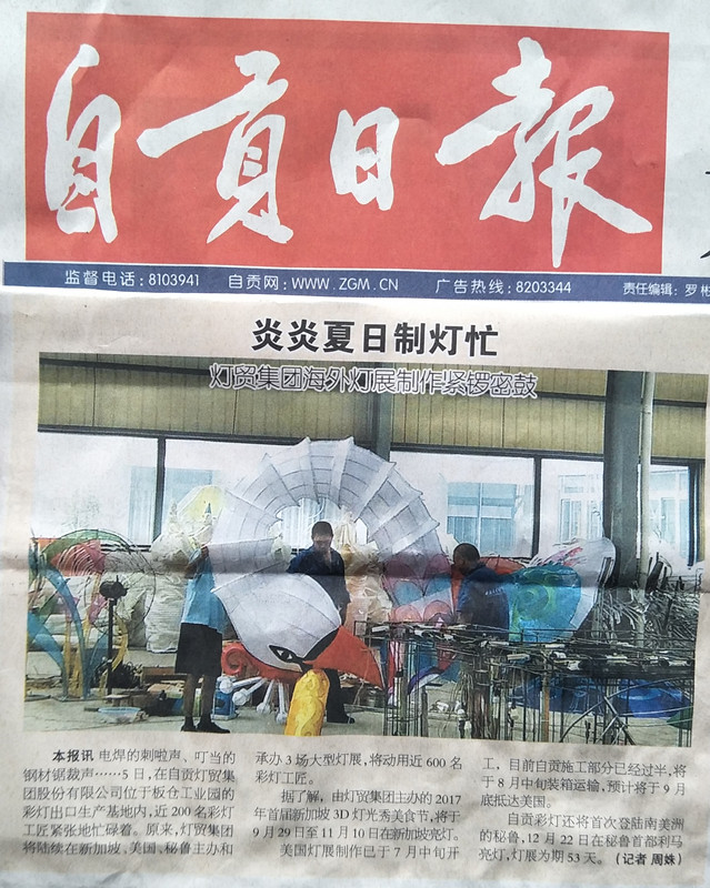 “日輪當(dāng)午凝不去,萬國如在洪爐中”盛夏的自貢驕陽似火。東方彩燈出口基地生產(chǎn)廠區(qū)內(nèi)一派繁忙,2017全球巡展燈組制作正緊鑼密鼓進(jìn)行中。參加燈組制作的工人揮汗如雨:燒焊、接線、切割、裱糊......一組組、一個個生輝溢彩、斑斕絢麗的彩燈在勤勞智慧的彩燈藝人手中呈現(xiàn)。