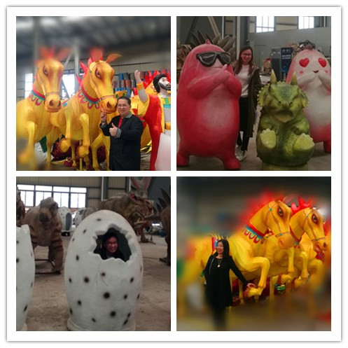 隨后考察團(tuán)一行參觀了東方彩燈出口基地,并紛紛與彩燈、恐龍合影,喜愛之情溢于言表。