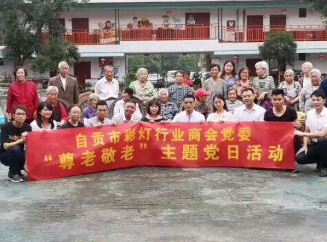 為慶祝中國(guó)共產(chǎn)黨建黨九十八周年,弘揚(yáng)社會(huì)主義價(jià)值觀(guān),“七一”前夕自貢市彩燈行業(yè)商會(huì)黨委書(shū)記粟本鋼、副書(shū)記黃蓉率領(lǐng)騰達(dá)公司、燈貿(mào)集團(tuán)、海天公司、彩燈之鄉(xiāng)、潤(rùn)辰公司等彩燈公司部分黨員,來(lái)到自貢市福樂(lè)園,組織開(kāi)展了“慶祝建黨九十八周年 弘揚(yáng)中華敬老愛(ài)老傳統(tǒng)”主題黨日活動(dòng)。